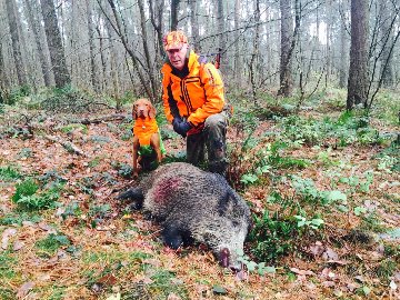 Diese 60 Kg Bache mußte Dank der gesetzlich vorgeschriebenden bleifreien Munition in NRW, noch ca. 90 Minuten im Wundbett liegen. Selbst dann noch, hatte sie meinen Hund versucht anzunehmen. Mit diesem normaler Weise absolut tödlichen Treffpunkt, hat diese Nachsuche wieder einmal gezeigt, das ideologisches Denken, Wählerversprechen und Feldversuche nicht die Praxis wiederspiegeln.