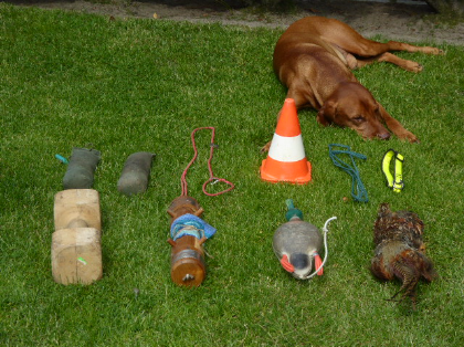 Auf dem obrigen Foto liegen nachfolgende Gegenstände, die unabdingbar für eine gute Ausbildung mit Richtung Herbstzuchtprüfung sind.